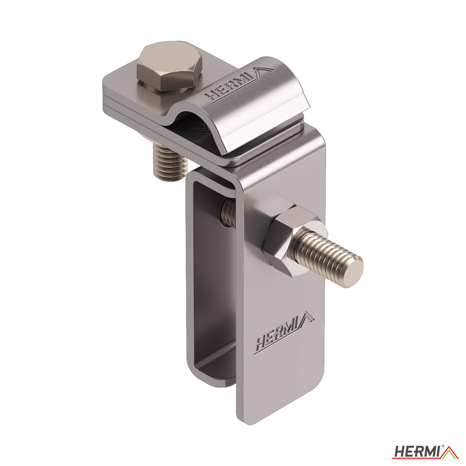 20 mm x 52 mm-es lemezekből és M6-os csavarokból álló bilincs kerek vezetékek tartására szolgál fémlemeztetőn.